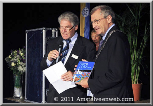 Frans Hentzen, voorzitter van de Turnvereniging O.D.I.N. overhandigt het jubileumboek 'O.D.I.N. 100 jaar' aan, John Levie wethouder sport.
